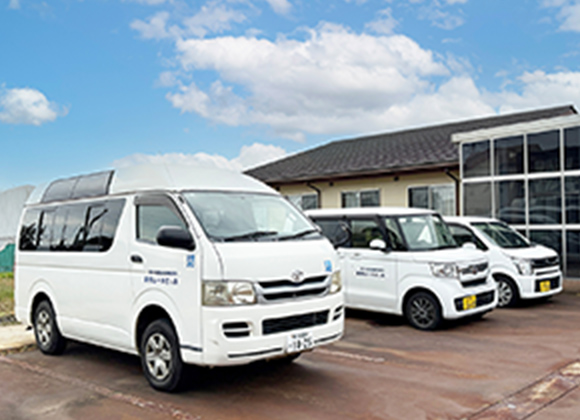 職員が付き添って、行きと帰りの送迎を行います。ご利用中のご様子を、専用のノートでご家族にお伝えします。