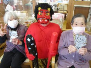「季節の行事」和楽では季節ごとに行事を行い、季節感を感じて頂いております。これからの予定としまして、2月には節分。3月にはひな祭りの行事をそれぞれ予定しています。2月の節分行事では職員が鬼に扮して、ご利用者様が鬼にめがけて一生懸命に豆の代わりの新聞紙を投げて楽しみます。