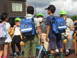 「おかえりなさ~い!」春先には日向ぼっこしながら、元気に帰ってくる小学生を見守りする見守り隊を行っています。春には新一年生も私たちに笑顔で手を振ってくれます。