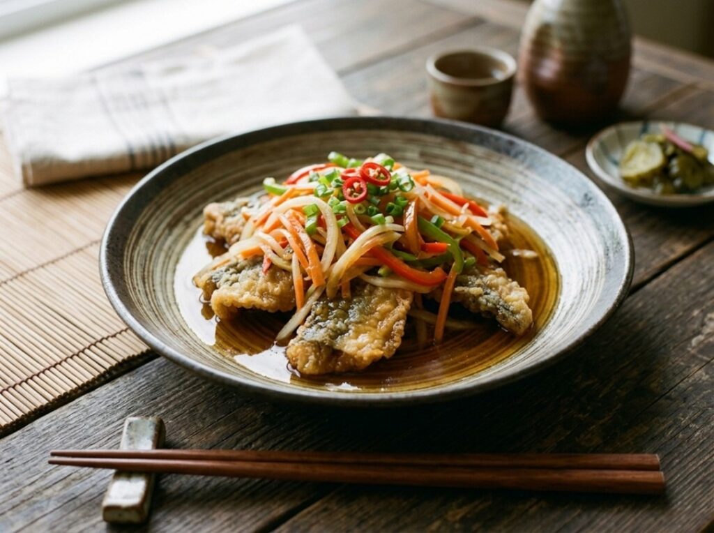 冒頭の一皿は、私のおススメ魚料理『アジの南蛮漬け』です。